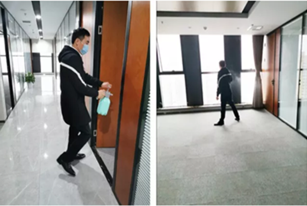 一早正?,F(xiàn)代疫情防范小組來到公司進(jìn)行人員管控、環(huán)境消毒、疫情宣傳、物質(zhì)籌備等方面工作;復(fù)工前辦公各個(gè)區(qū)域都進(jìn)行了消毒,清點(diǎn)檢查了所有防護(hù)用品,為明天的復(fù)工做好了充足準(zhǔn)備。