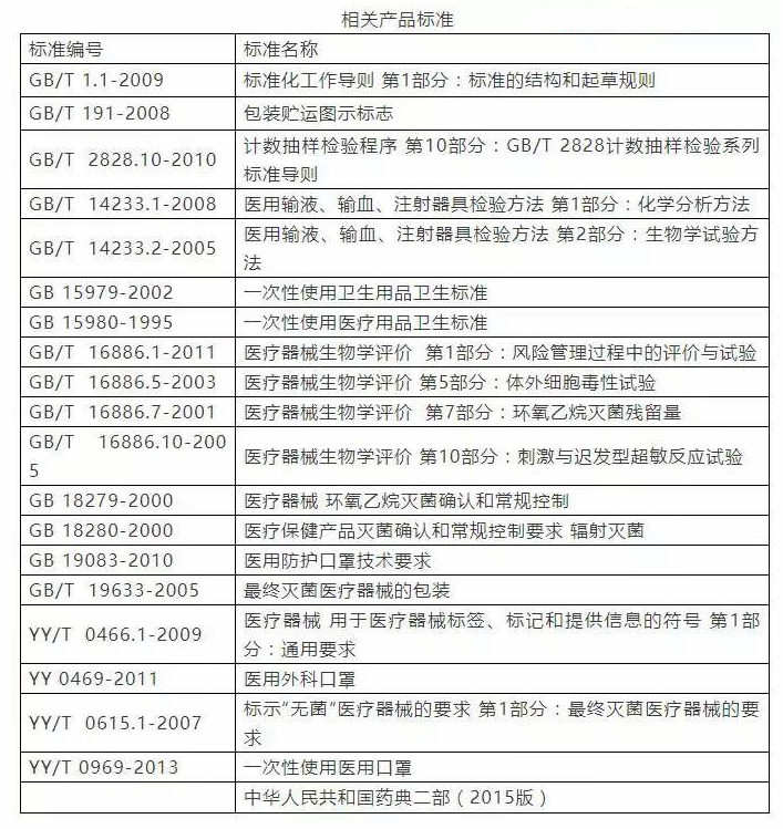 醫用口罩相關國家標準