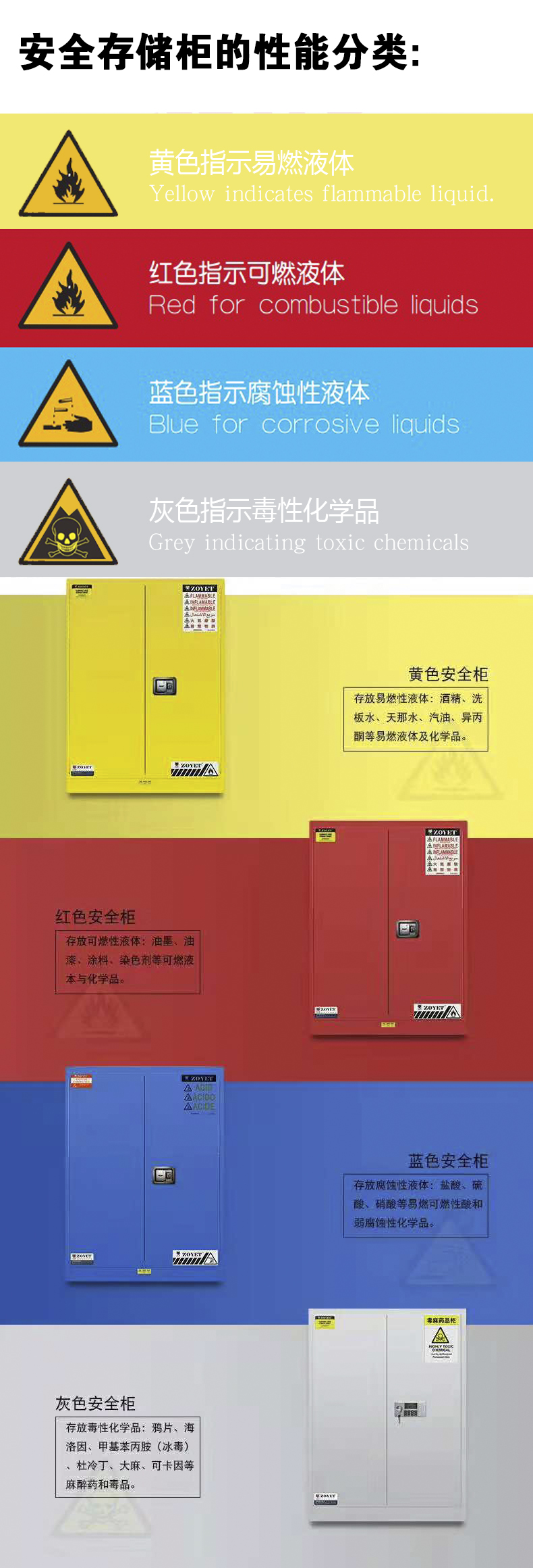 安全柜是實驗室家具必不可少的一部分的器材。那么您是否知道不同顏色的安全柜,存放的物質也不一樣呢?好吧,接下來小編就帶你看一看不同的安全柜有哪些不同!
