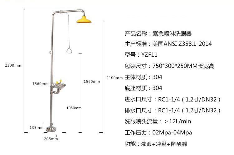 下面簡單介紹一下美國ANSIZ358.1應急淋浴和洗眼裝置標準。標準沒有要求一定是固定裝置,只是提出了如下技術要求。